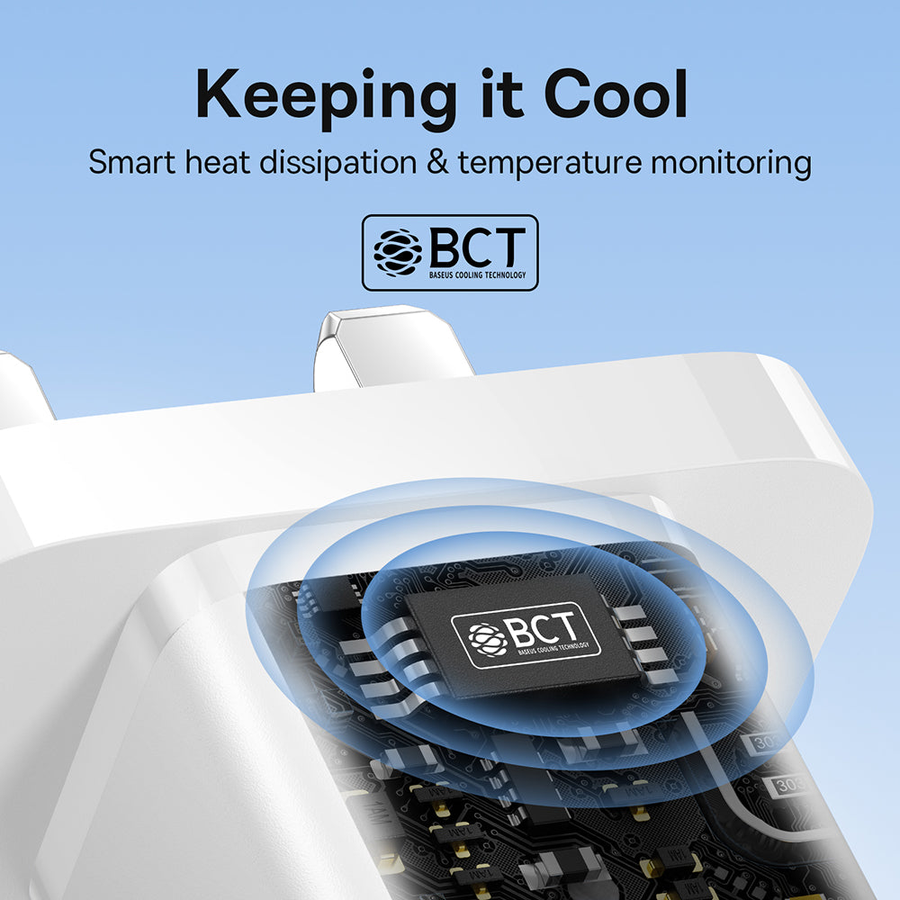 Baseus GaN5 UK Network Charger, 30W, 3A, 1 x USB-C, White P10110906213-00