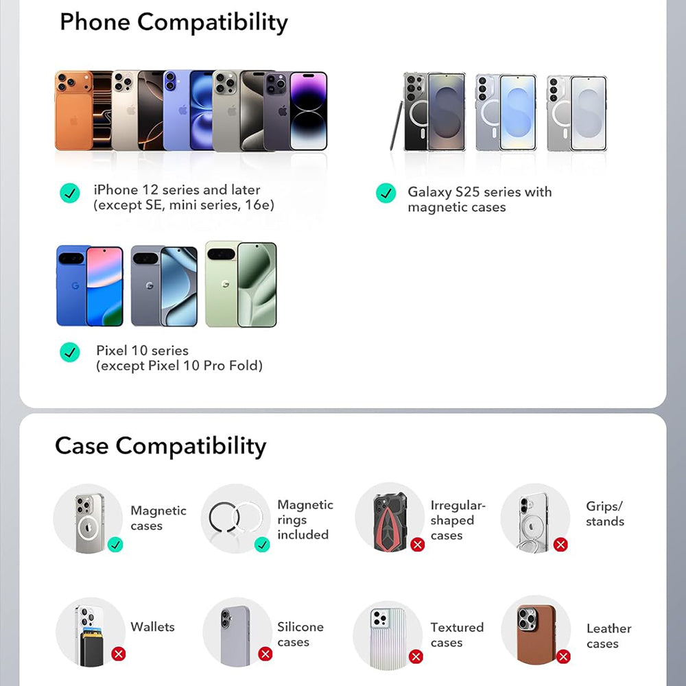 • Package includes: 1x car holder, 1x magnetic ring.