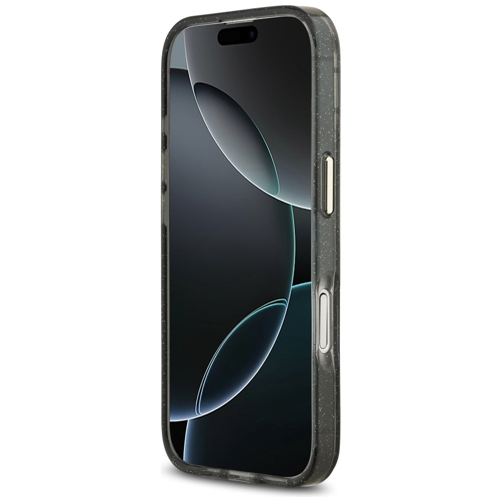 MagSafe Case for Apple iPhone 17, Guess, IML Metal Glitter Flowers Triangle, Black