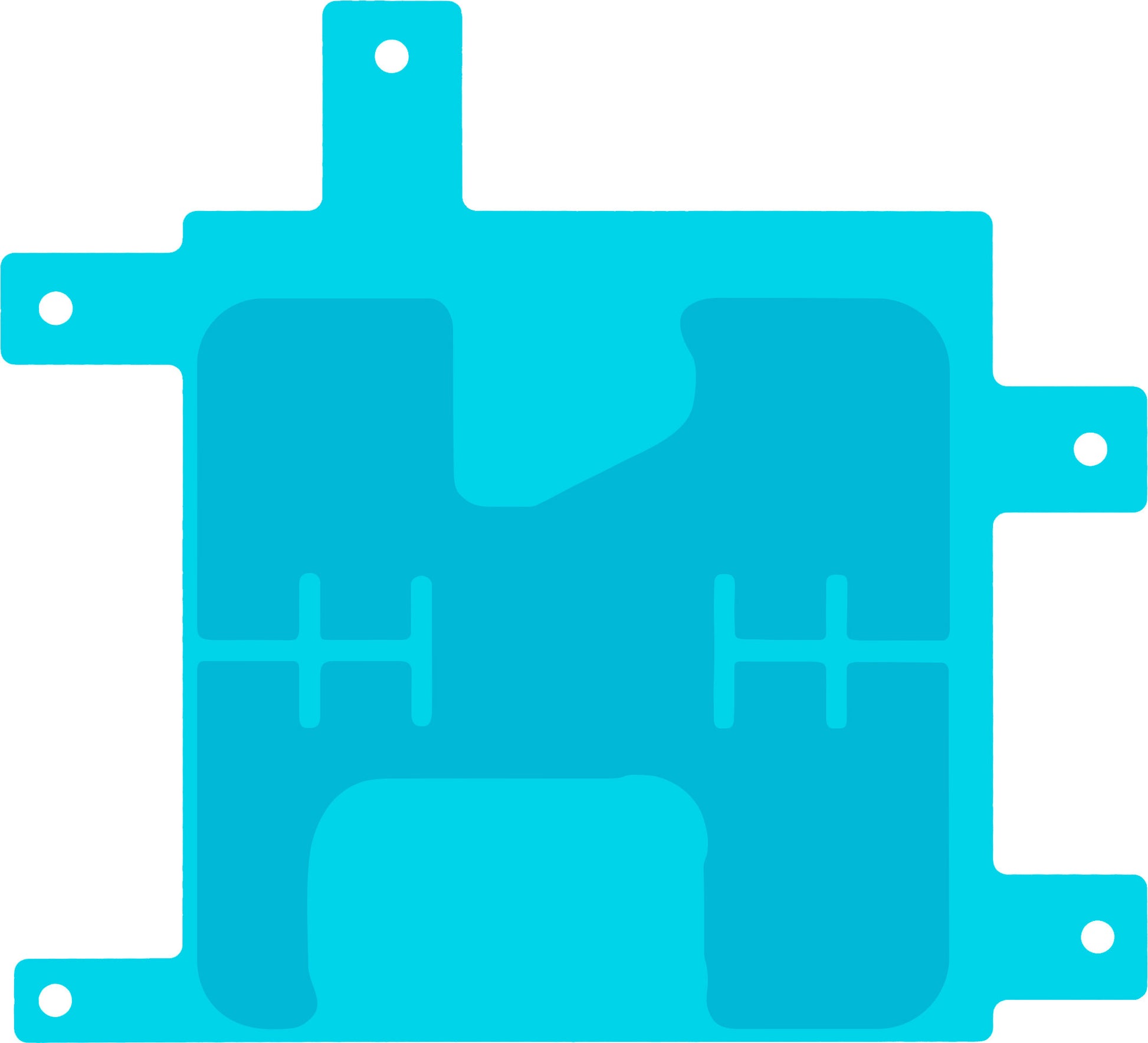 Adhesive designed for precise mounting of the battery onto the phone body.