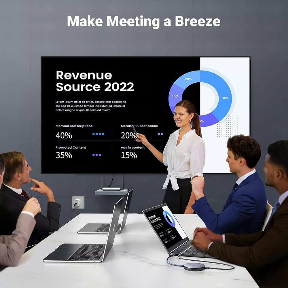 or home entertainment. The UGREEN CM586 model offers simultaneous support for HDMI and VGA outputs, which means extended compatibility with various