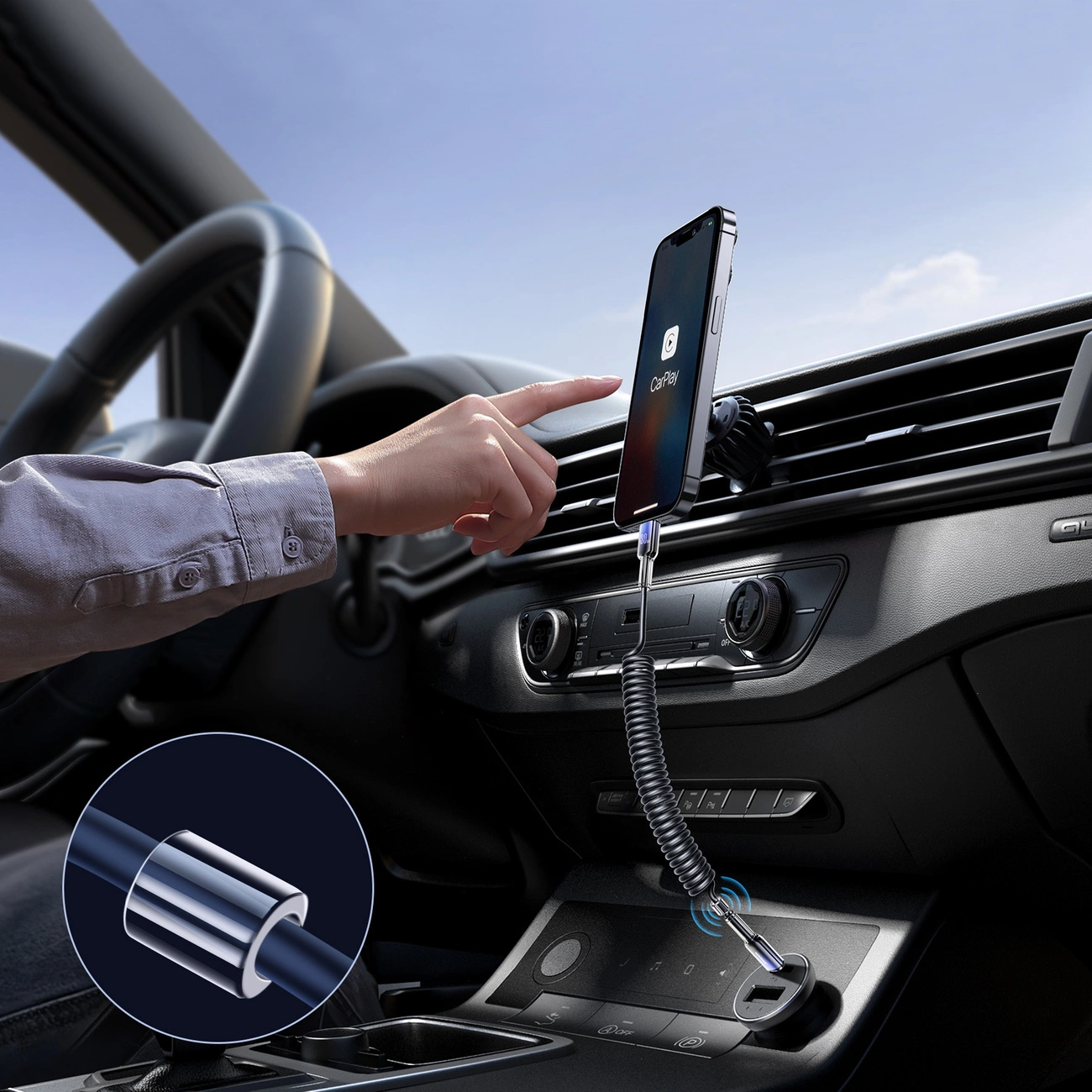 The magnetic ring reduces electromagnetic interference, ensuring a stable connection for CarPlay and data transfer.