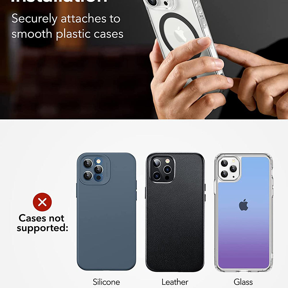 • Il pacchetto contiene due kit per il montaggio dell'anello, in modo che tu possa posizionarlo adeguatamente. Tutto è così semplice con il nuovo adattatore HaloLock di ESR.