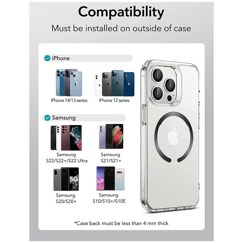 • Grazie alla guida inclusa nel pacchetto, puoi montare l'anello magnetico in pochi secondi. Risparmi tempo e ti assicuri di installare correttamente l'anello. Semplice e facile.