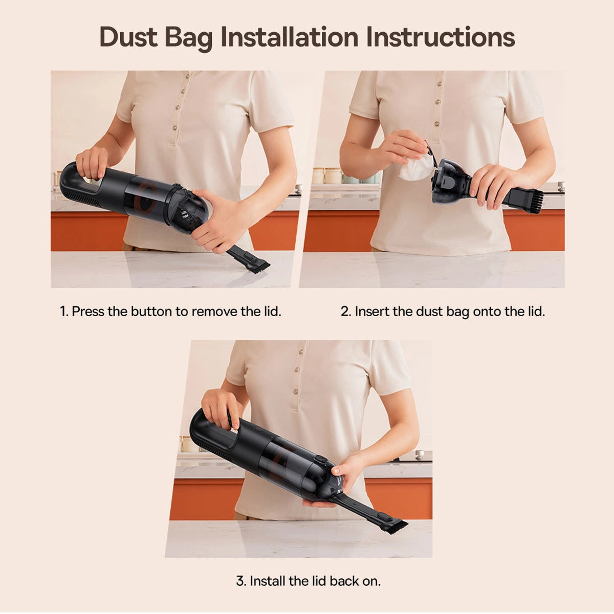 L'uso di sacchetti per la polvere monouso rende la pulizia più igienica ed elimina la necessità di contatto diretto con