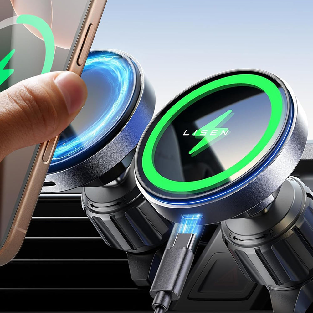 Cerchi consigli? Questo supporto auto per la griglia di ventilazione Lisen combina la stabilità di un aggancio magnetico con la moderna tecnologia di ricarica wireless.