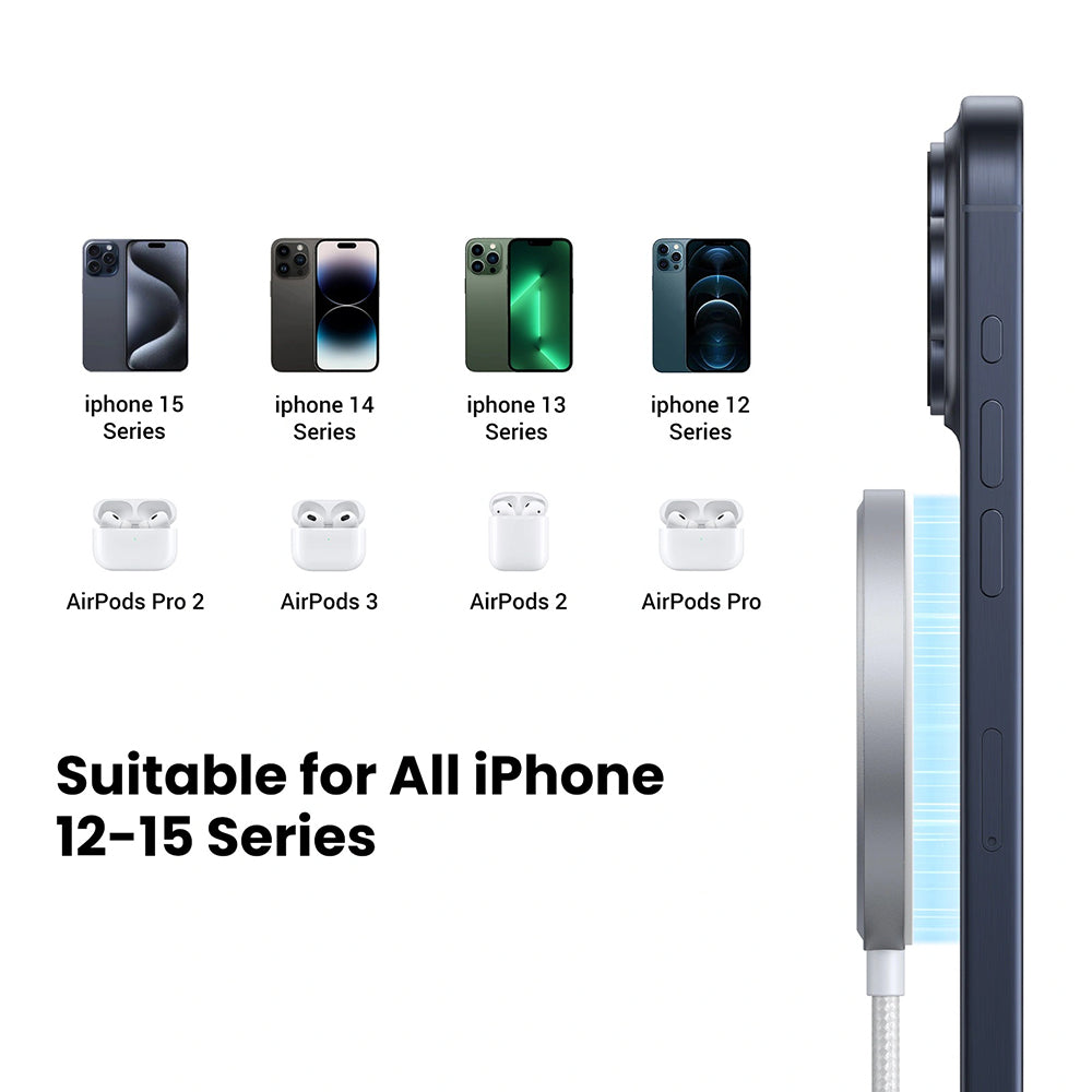 Compatto e leggero, UGREEN W703 è perfetto sia per l'uso quotidiano che per i viaggi, essendo compatibile con iPhone 12 fino a iPhone 16,