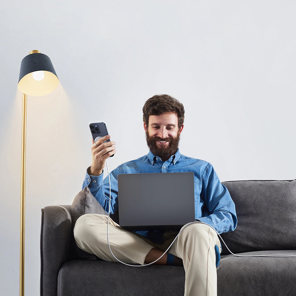 senza cavi aggiuntivi. È dotato di un cavo USB-C integrato, lungo 1.5 metri, con protezione tessile contro l'usura e gli intrecci.