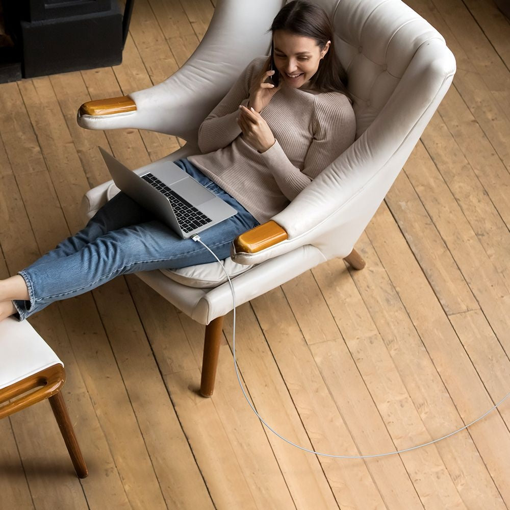• Non è un problema. Ora puoi caricare fino al 60%, in mezz'ora, un MacBook Pro 16. Il cavo con potenza fino a 140W ti aiuta a risparmiare tempo.