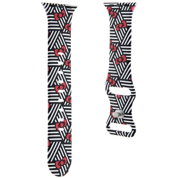 Cinturino Hello Kitty Silicone Bows & Stripes per Apple Watch 42mm / 41mm / 40mm / 38mm Series, Nero
