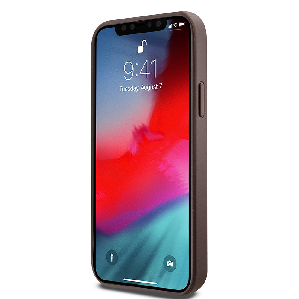 Custodia MagSafe per Apple iPhone 12 / 12 Pro, Guess, 4G Ring Classic Logo, Marrone