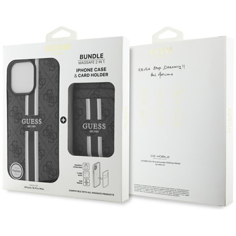 Custodia MagSafe per Apple iPhone 16 Pro Max, Guess, Cardslot 4G Stripes, Nera
