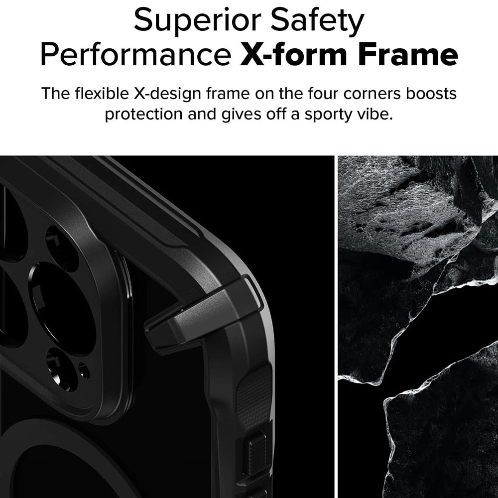 • La nuova serie Fusion X incorpora il policarbonato classico, trasparente, in una cornice elastica di silicone rinforzato, con un design innovativo a forma di "X", centrato nei quattro angoli della custodia.