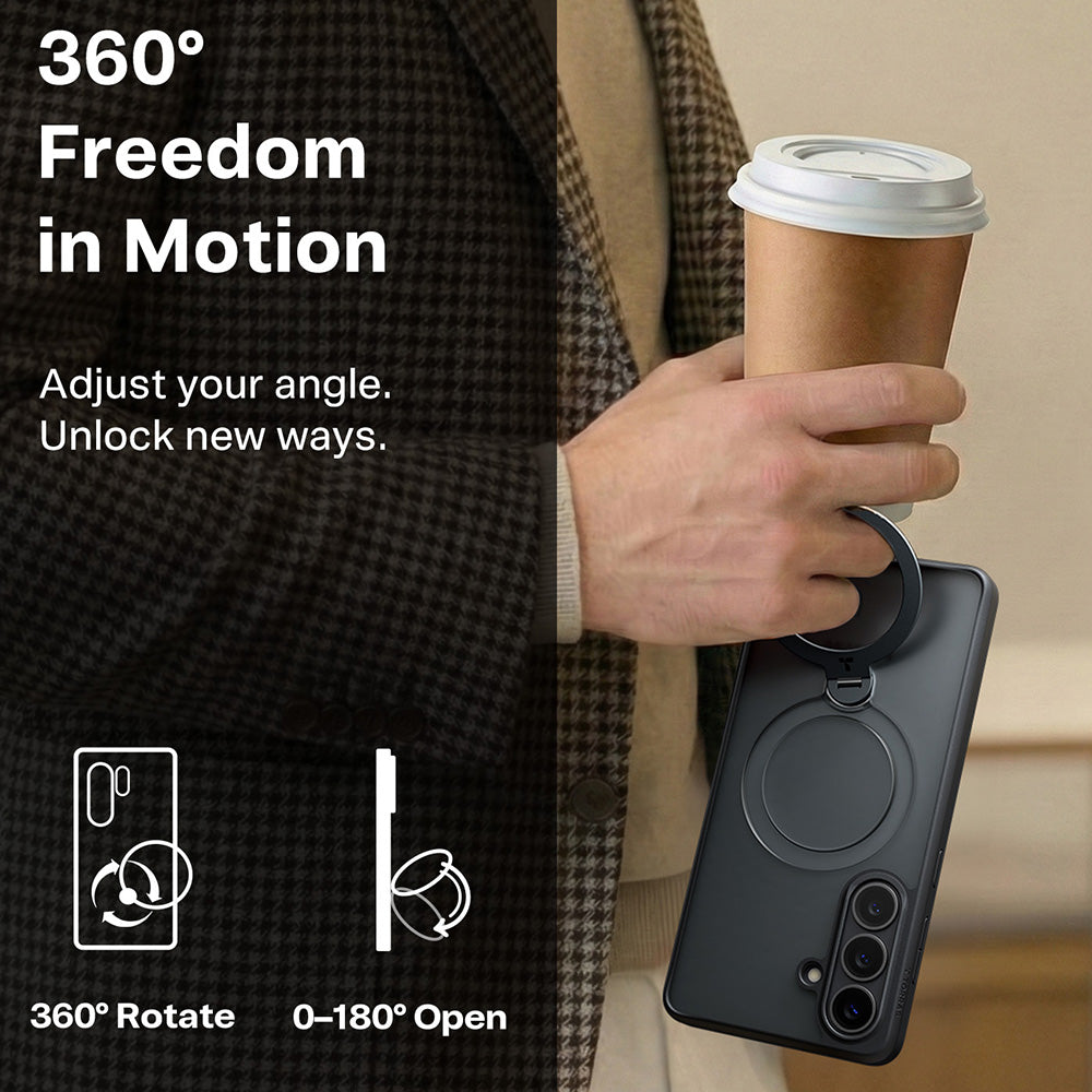 Custodia MagSafe per Samsung Galaxy S26, Torras, Ostand Spin, Nera