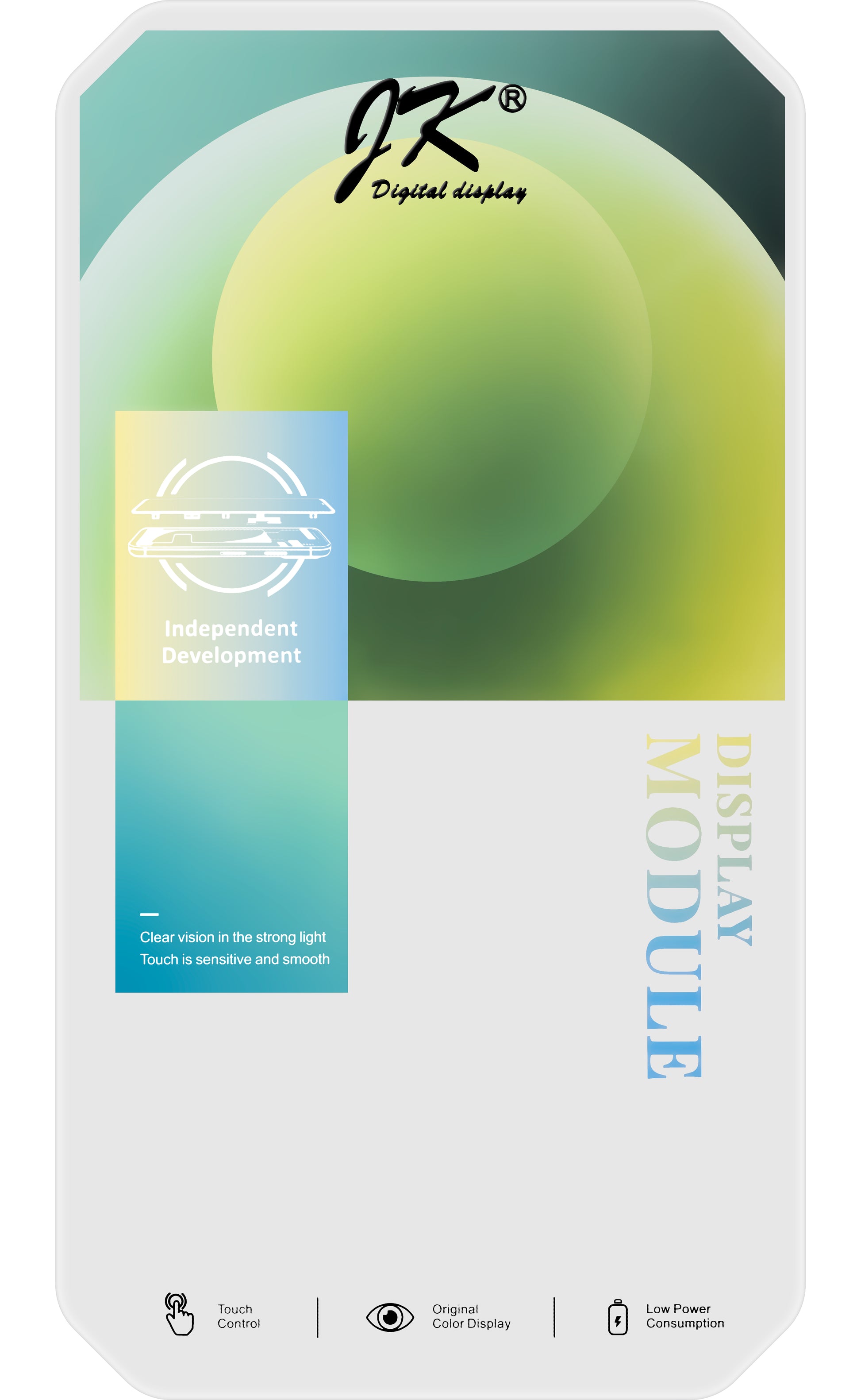 Controllo touch a 120Hz, elevata resistenza all'usura, ampia gamma di colori, basso consumo energetico.