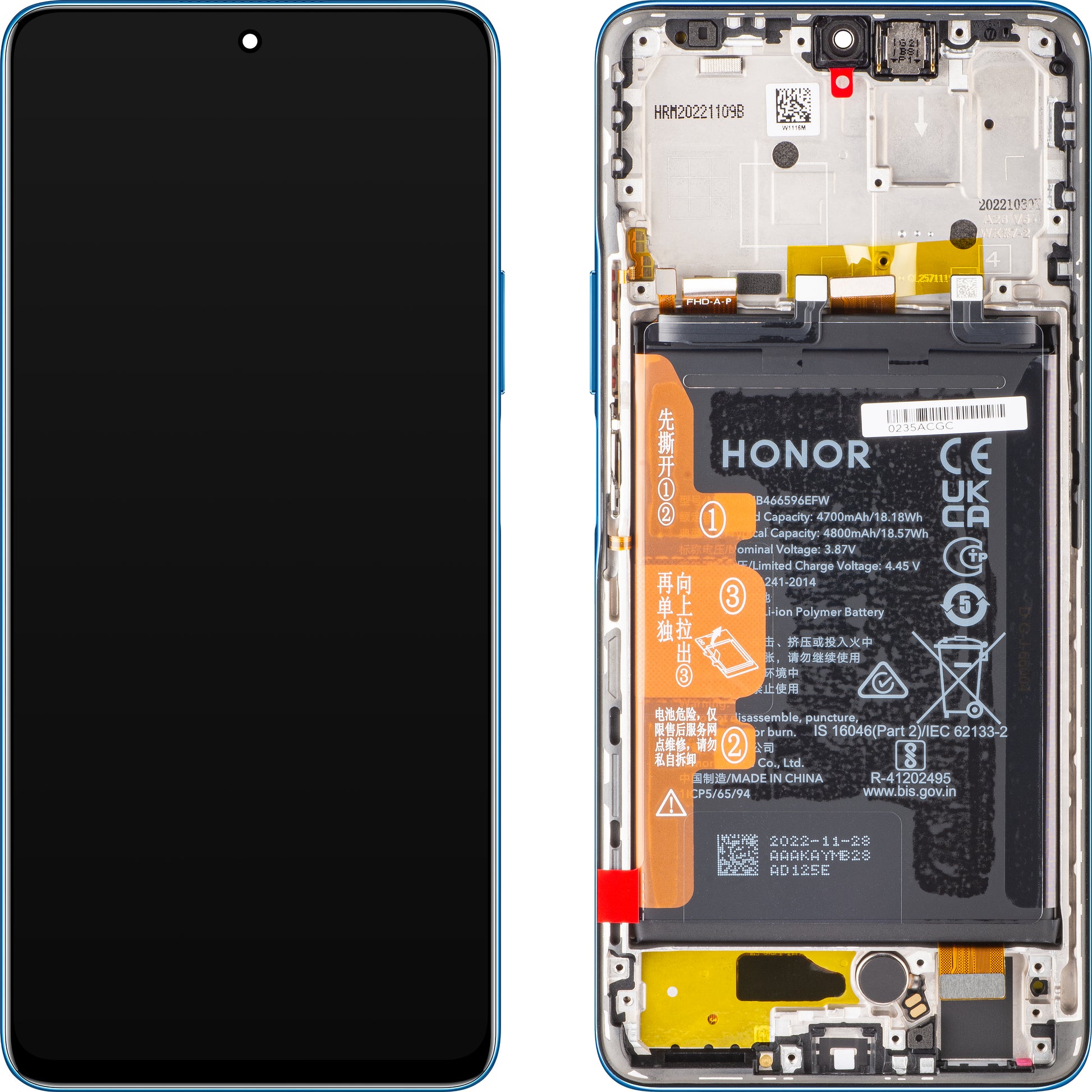 Display touchscreen Touchscreen Honor Magic4 Lite, con cornice e batteria, blu (Ocean Blue), Service Pack 0235ABST