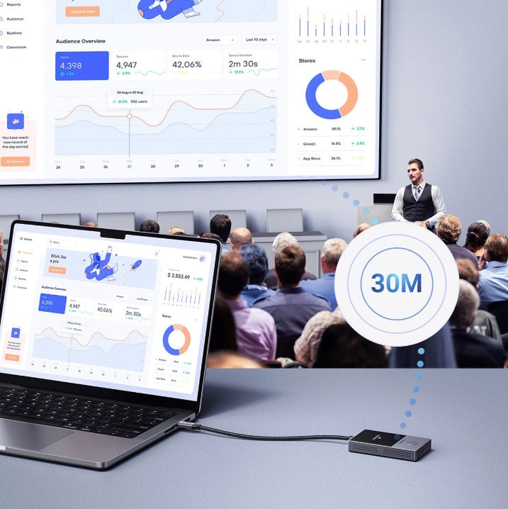 immagine fluida e configurazione ultra-rapida, senza installazione di software. Trasmette segnale HDMI in formato 1080p a 60Hz su una distanza fino a 30 metri