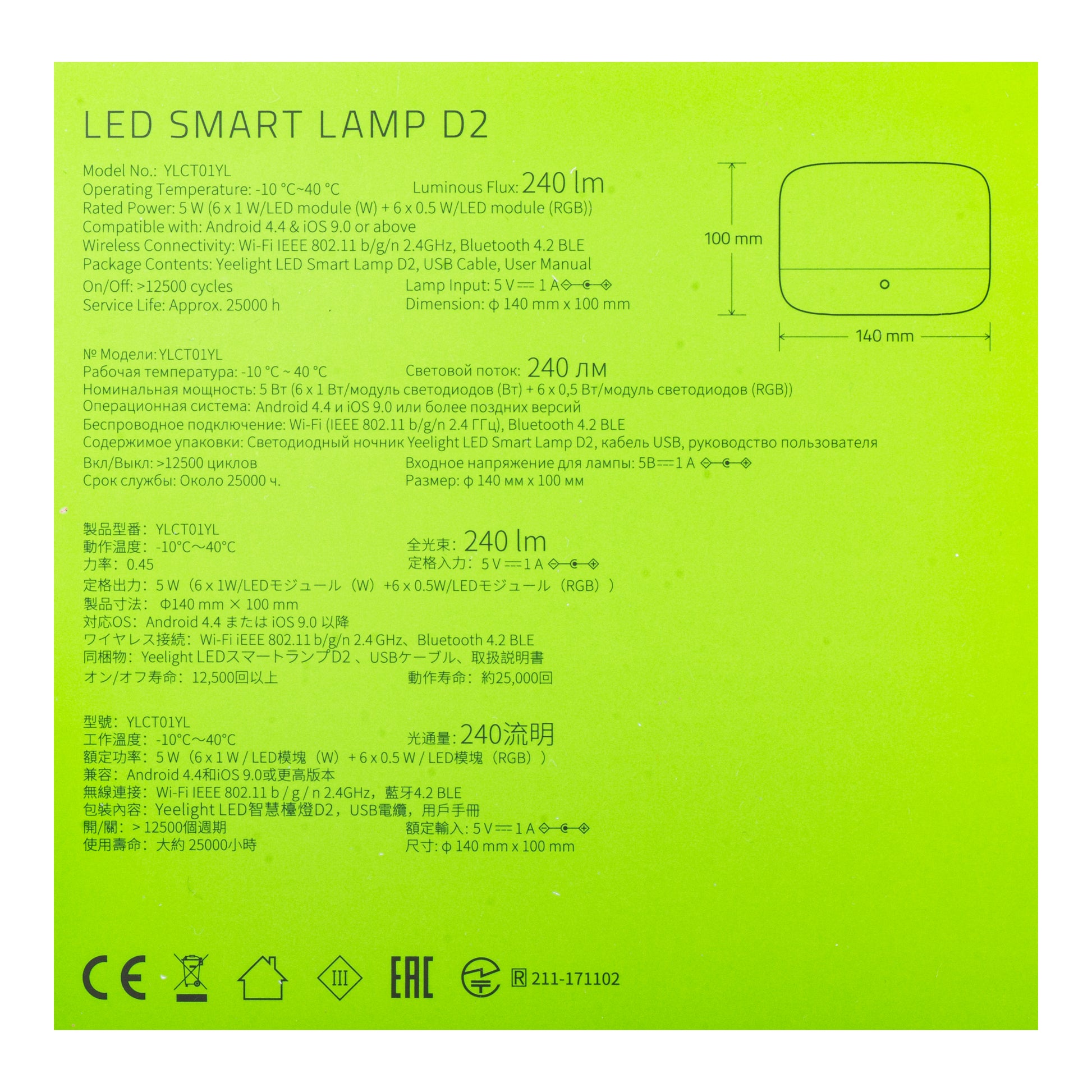 | Contenuto | Cavo di alimentazione / Lampada |