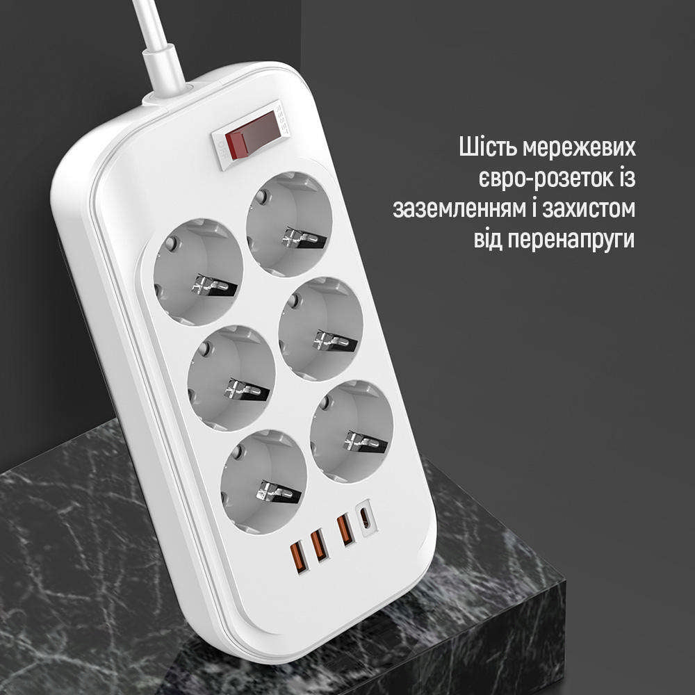 Prolunga ColorWay, 6 x Schuko, Bianco